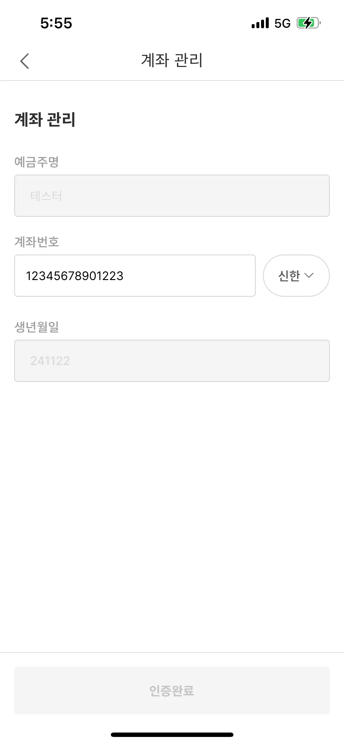 계좌 번호 및 은행을 선택한 후, 인증하기 버튼을 누릅니다. (아래 계좌 인증 가능한 은행을 꼭 확인해 주세요.)