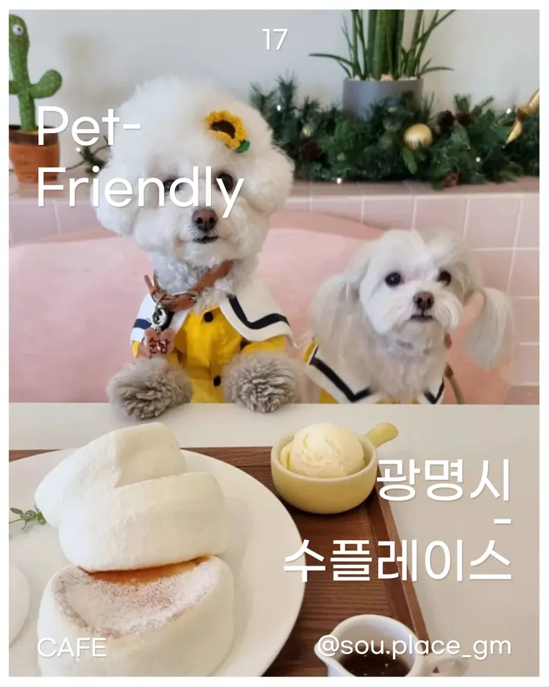 매장 내부는 대략 25명 정도 입장 가능한 크기입니다. 1층에 위치해 있는 만큼 매장 앞에 작은 마당도 마련되어 있습니다! 수플레이스는 반려동물 동반 가능 매장으로 대형견, 고양이, 맹견 모두 입장 가능합니다. 다만 대형견과 맹견은 야외석만 이용 가능합니다. 반려동물 이동가방이나 유모차가 없는 경우 야외석으로 안내드리고 있지만, 작고 짖음이 없는 강아지의 경우 실내에서 안아주시면 됩니다 :)