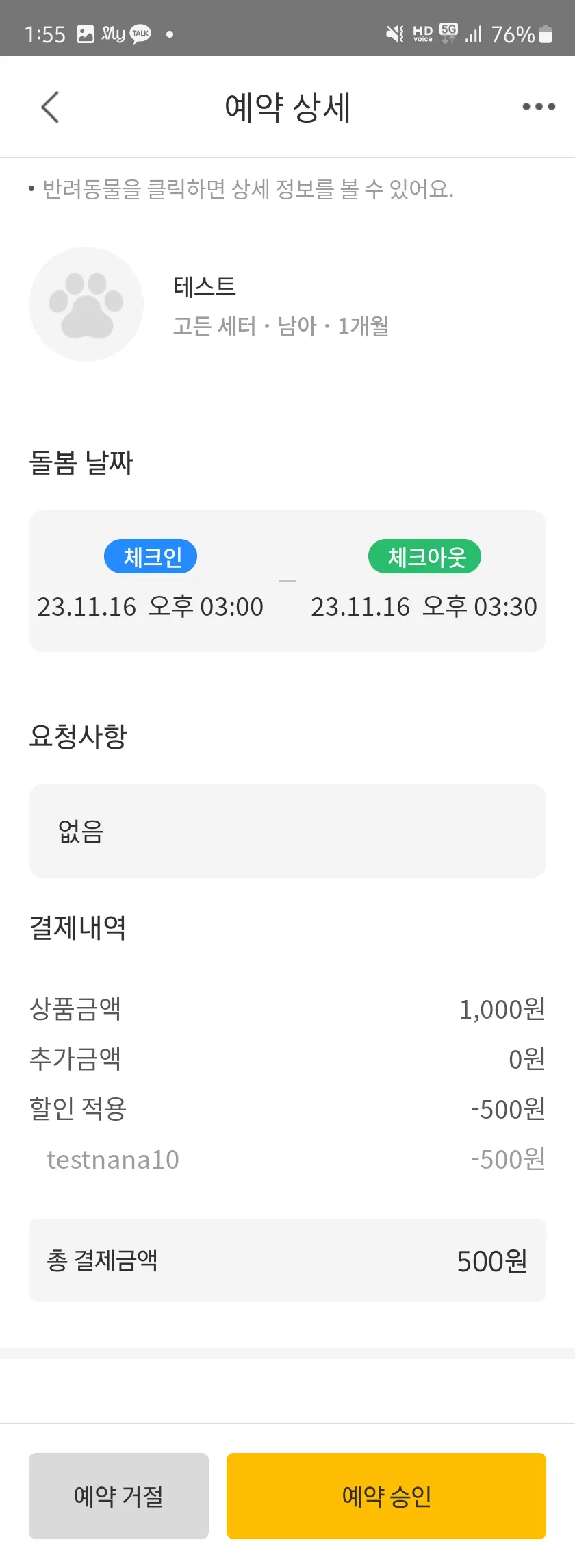 프렌드 홈 > 예약 현황 > 예약 내역 상세