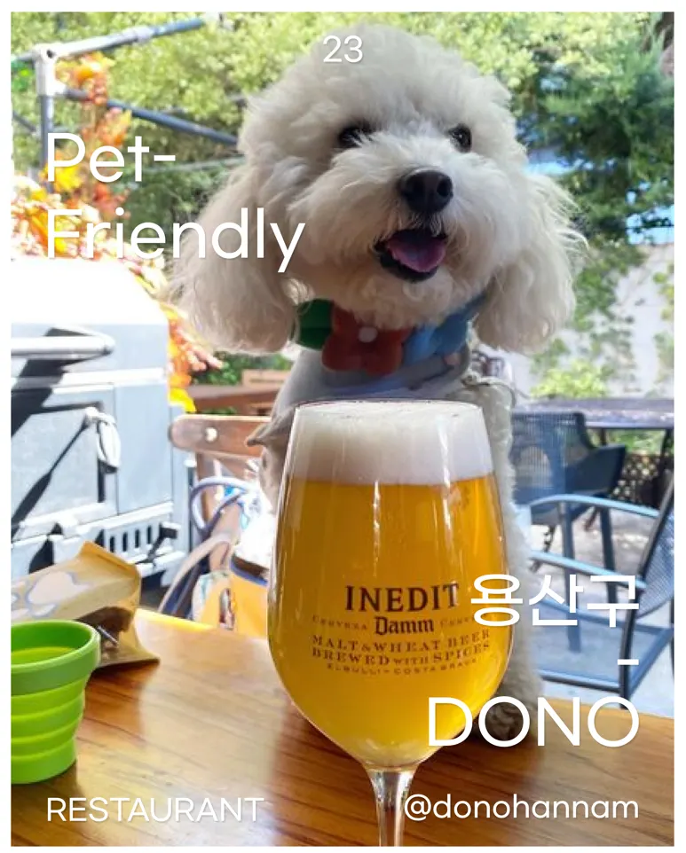 DONO의 가장 인기 있는 곳은 실외 좌석입니다. 날씨 좋은 날 테라스에 앉아 평온한 식사를 즐겨보세요. 피자와 함께 맥주 마시기 좋은 분위기입니다. 주변 테이블 사이도 넓어서 대형견과 함께해도 눈치가 보이지 않아요!