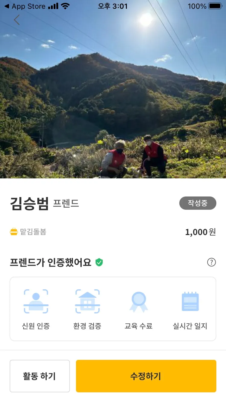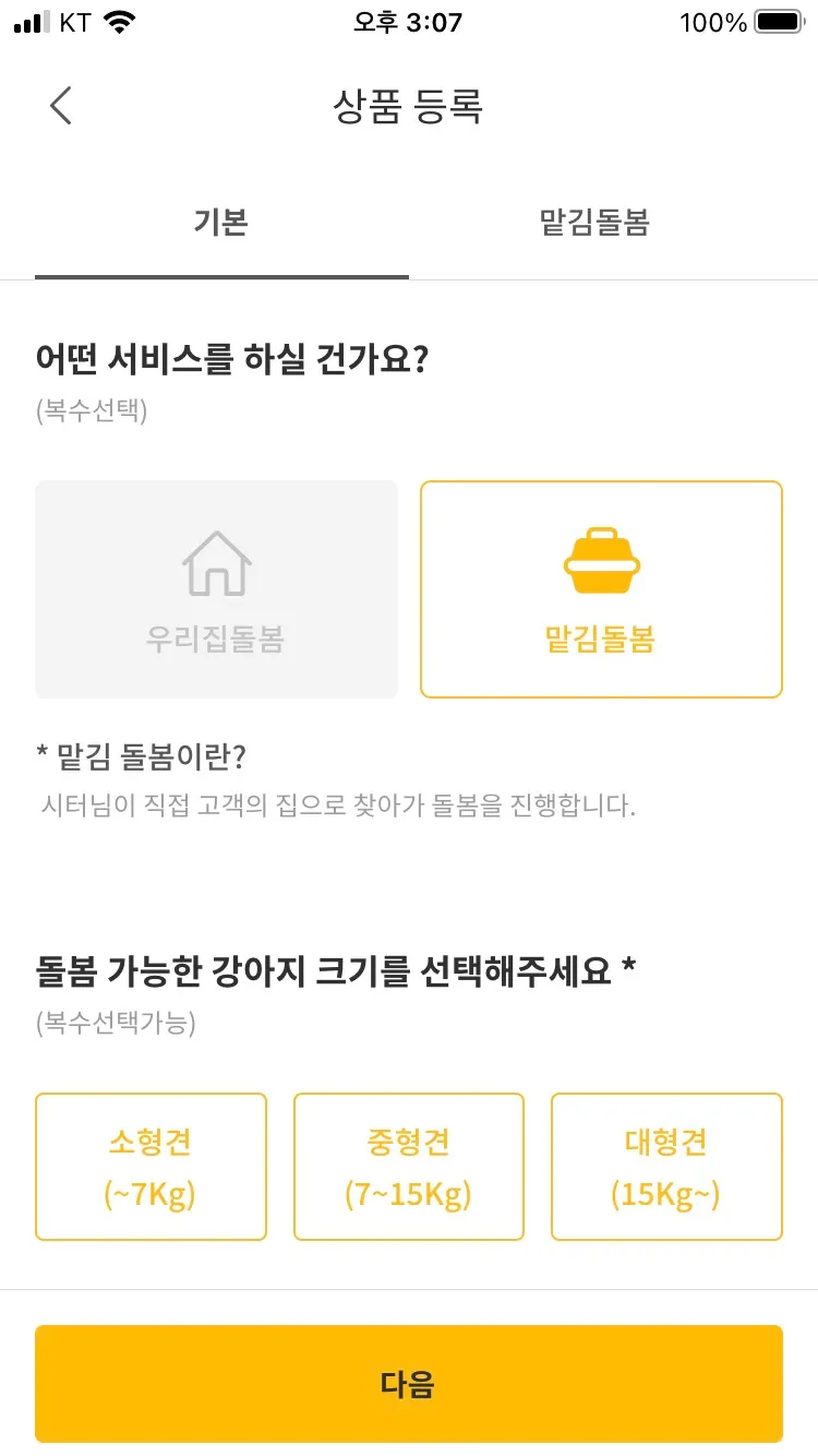 상품 상세 화면의 우측 하단에 수정하기 버튼을 눌러 펫시터 상품 수정을 진행해요.