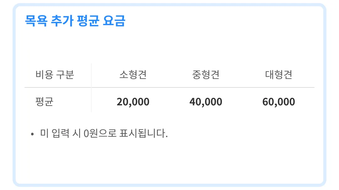 목욕 추가 시 평균 요금도 함께 안내드립니다.