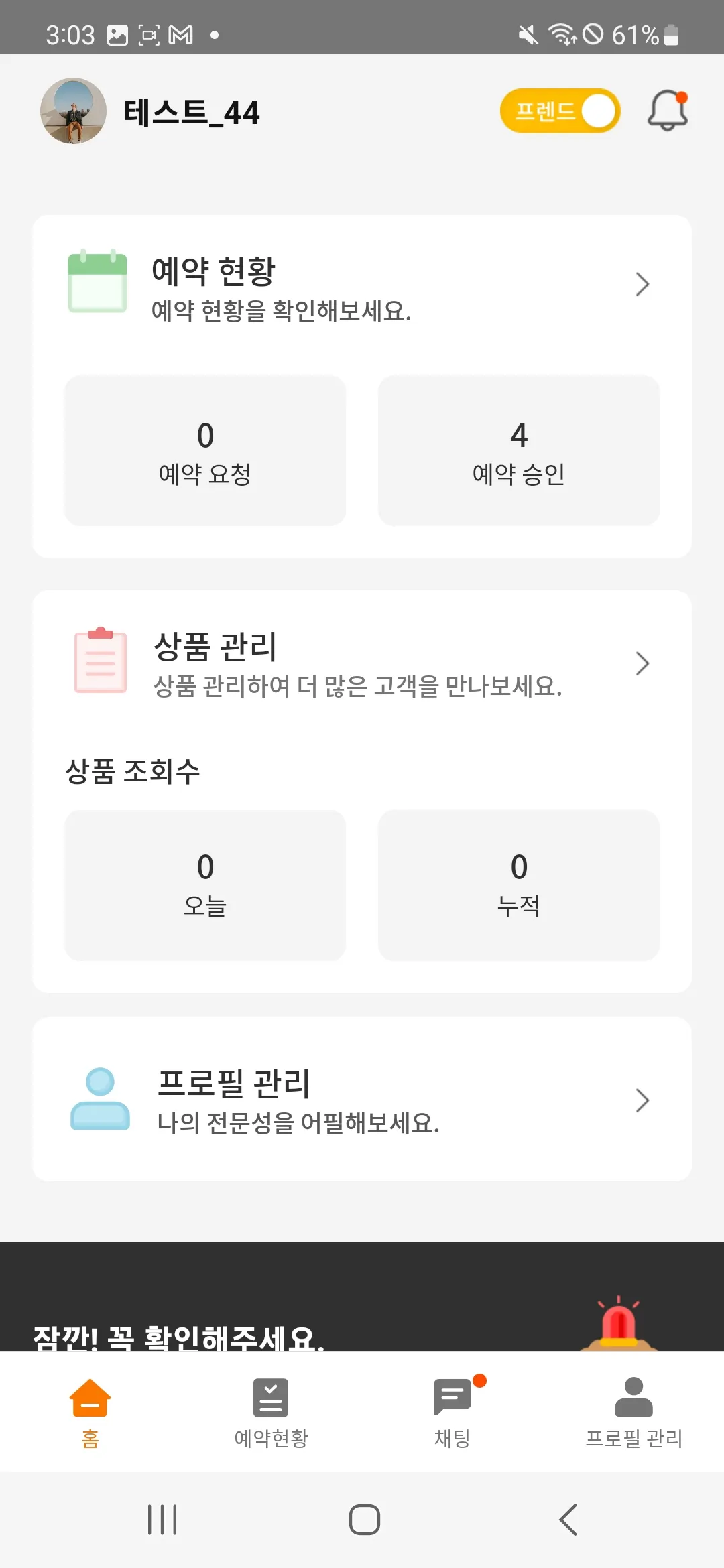 (프렌드 전환 버튼이 보이지 않는다면, 앱을 종료 후 다시 실행 부탁드려요.)