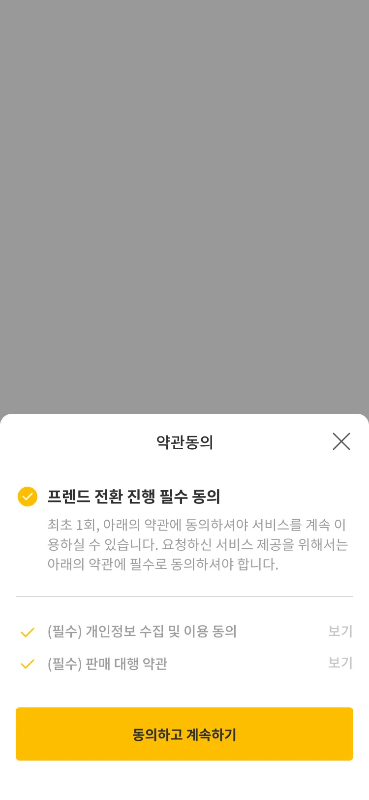 꼭 약관에 동의하셔야 프렌드로 전환할 수 있습니다.