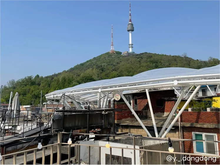 한 층 더 올라가면 남산과 해방촌이 한눈에 보이는 루프탑이 나와요. 사람이 많이 있을 만큼 너무 예쁜 곳이었답니다