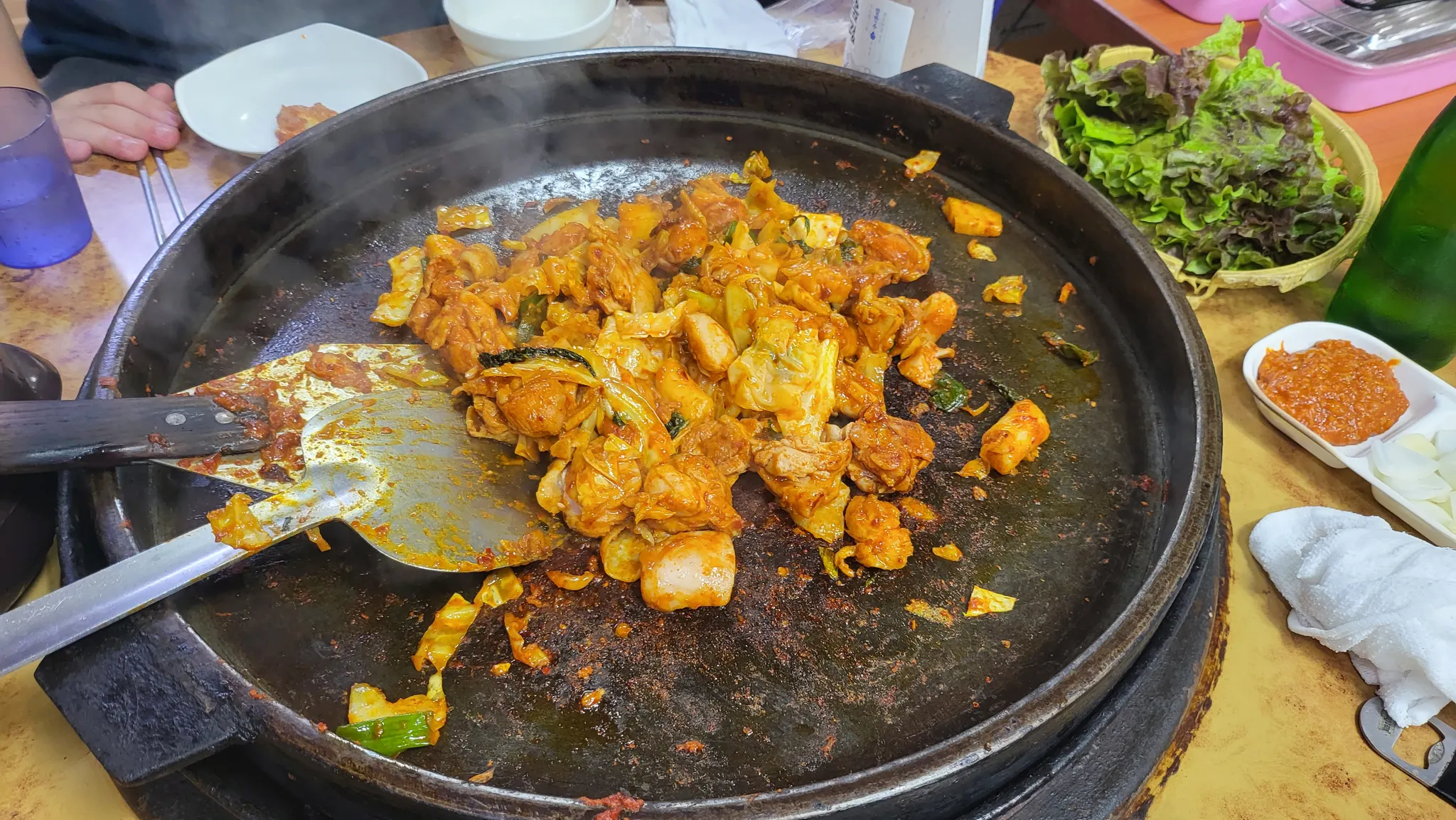 그리고 전날인 9월 30일 밤에 저와 알렉스는 먼저 춘천으로 떠났답니다. 약간 여행(?) 느낌이 나서 즐거웠어요. 도착해서 새벽 4시까지 여는 닭갈비 집을 방문해서 닭갈비를 먹었어요.