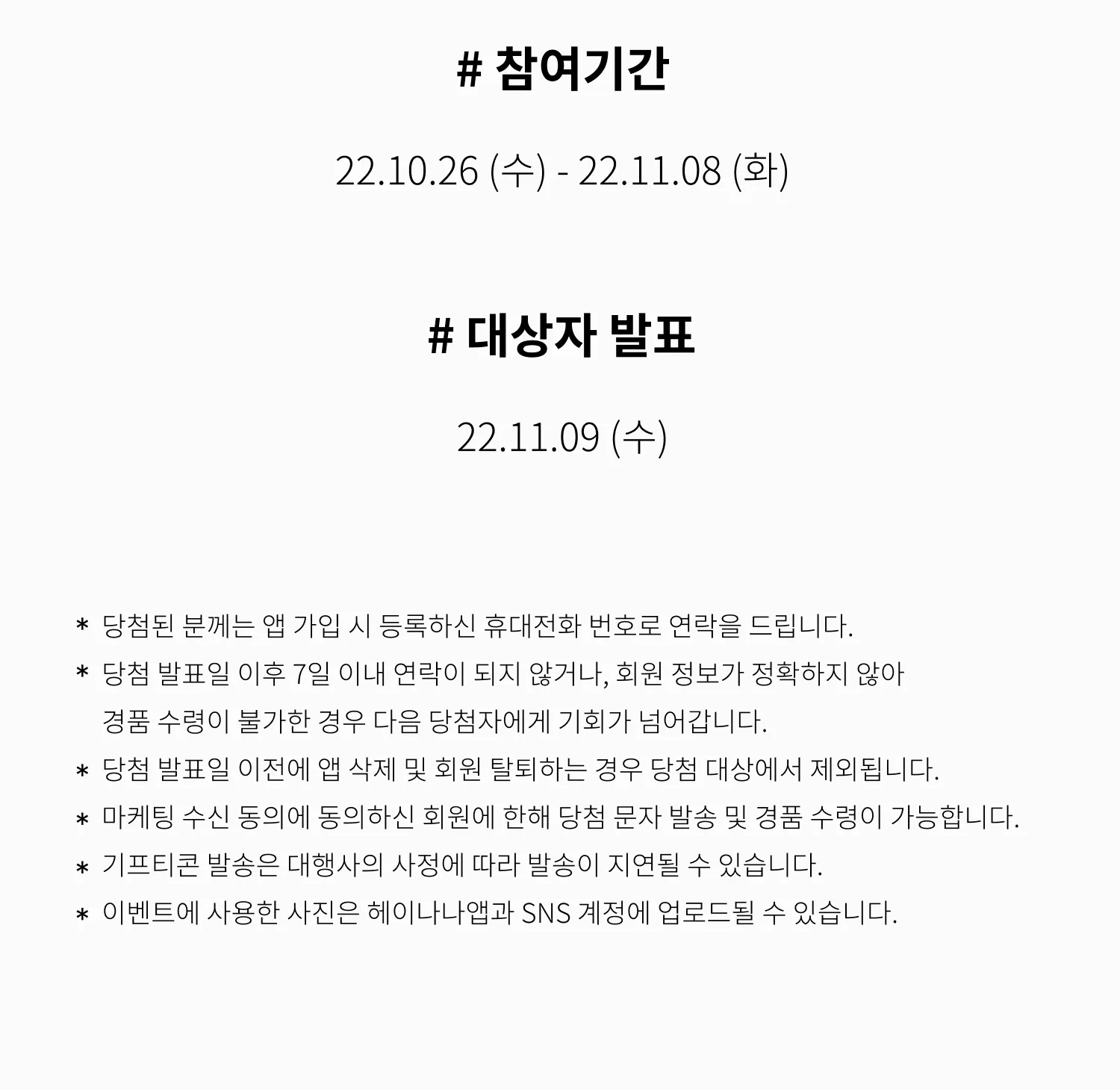 당첨 발표일 이전에 앱 삭제 및 회원 탈퇴하는 경우 당첨 대상에서 제외됩니다.