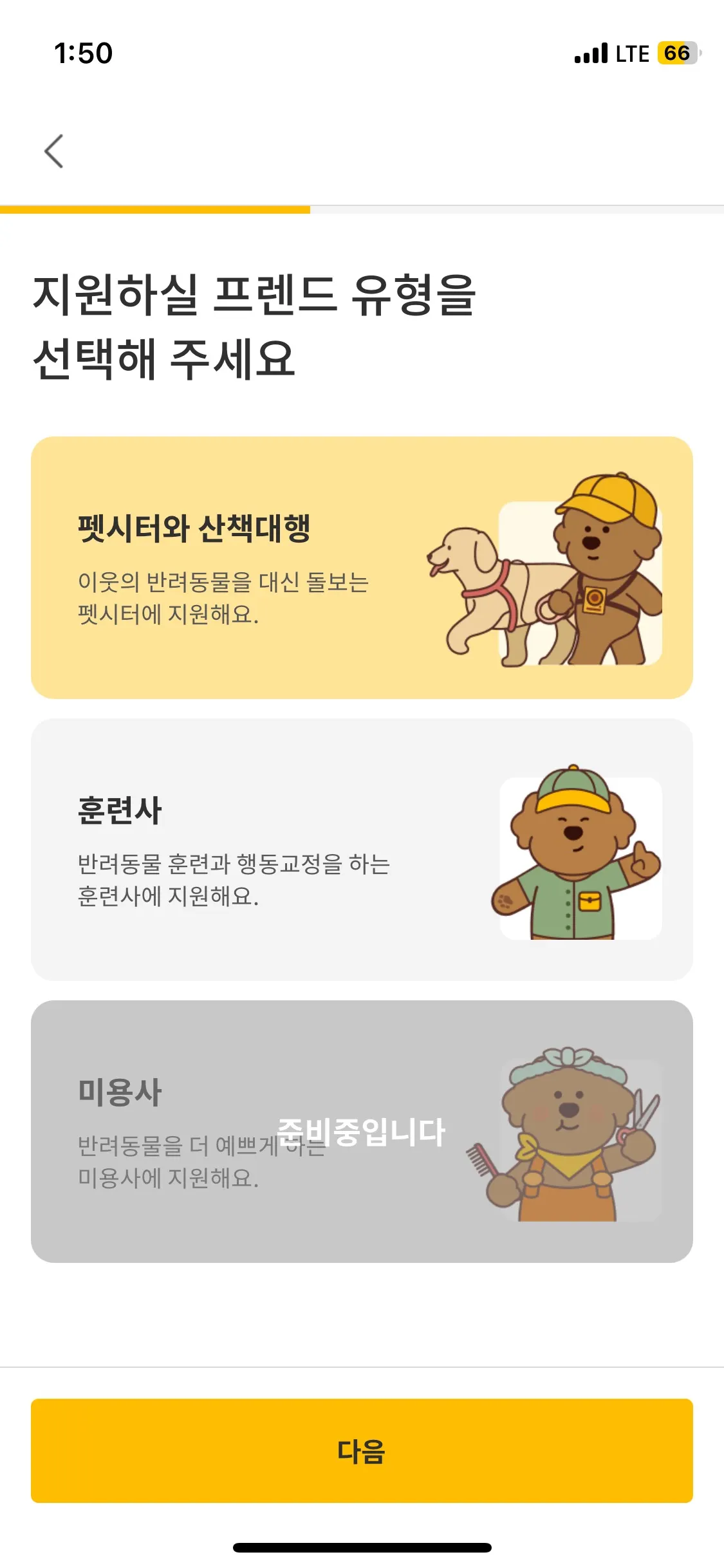 5. “펫시터와 산책대행”을 눌러 펫시터 등록을 시작해요.
