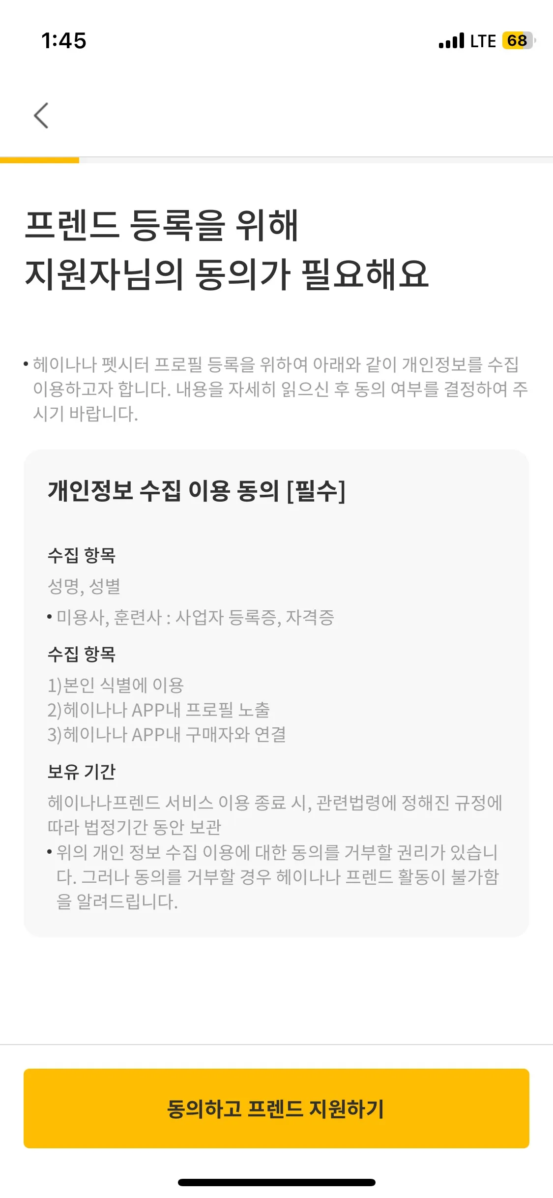 4. 펫시터 등록을 위해 “개인정보 수집 이용 동의”가 필요해요.