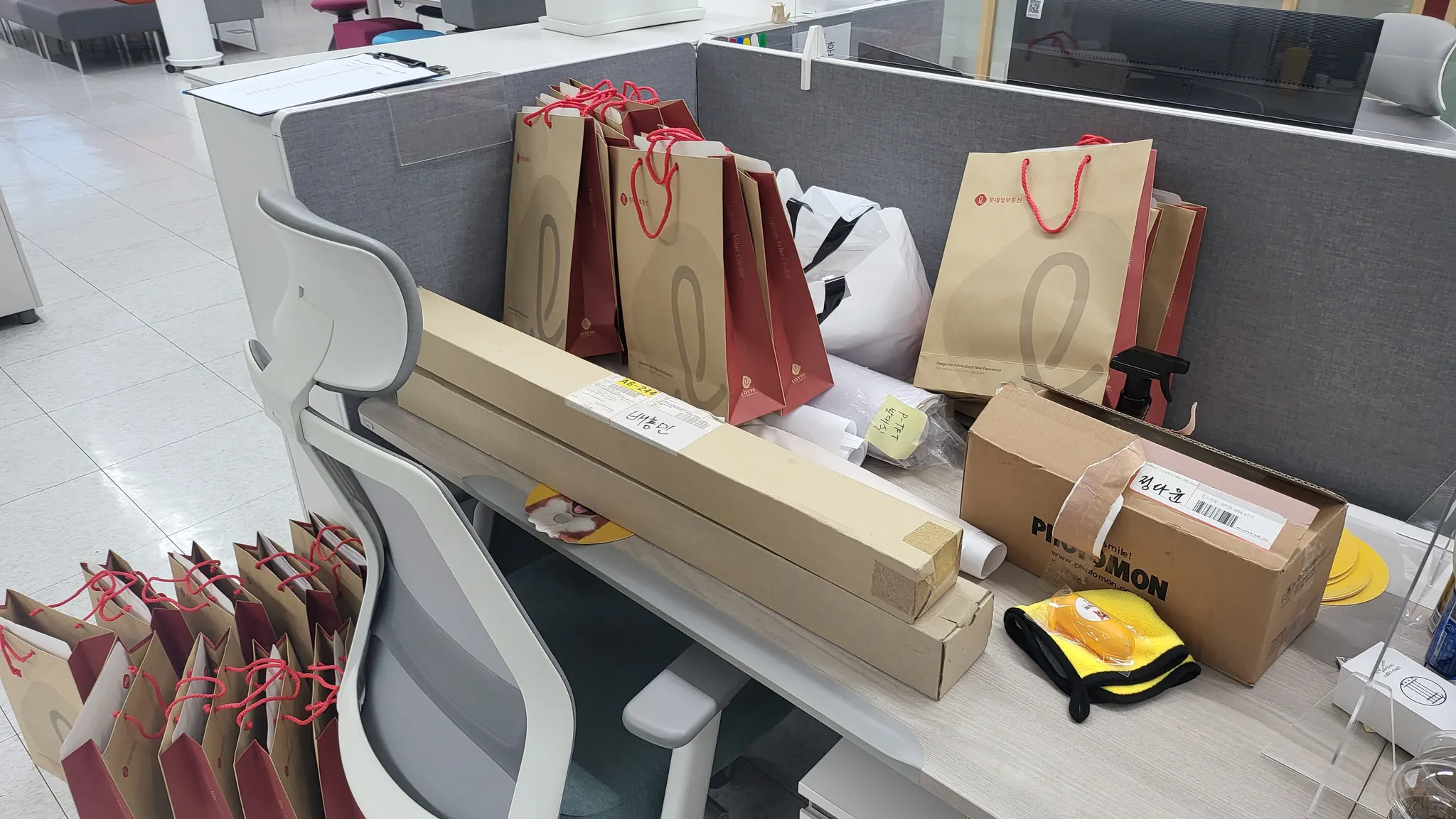 조금 지저분해 보이지만 준비하다 보니 이렇게 많이 쌓였네요… 현수막, X배너, 명함 등…