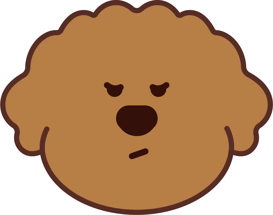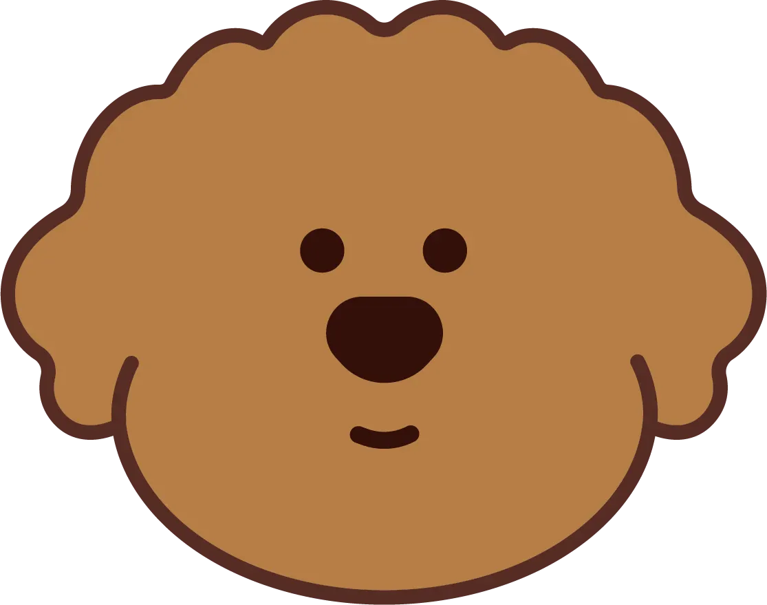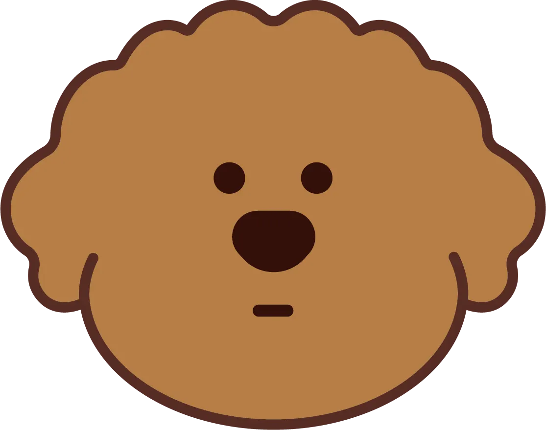 댕청한 표정과 초코색 눈코입이 매력적인 토이푸들.