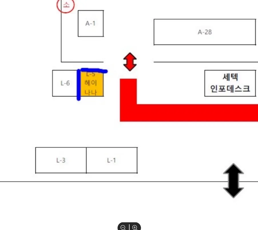 아래 사진과 같이 저희 부스는 인포데스크 바로 옆에 있어 들어오자 마자 확인할 수 있습니다