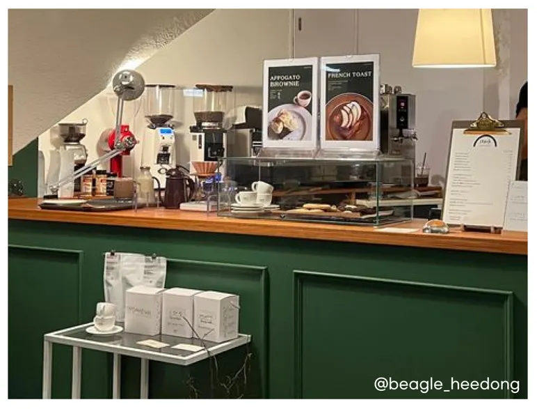 아메리카노는 '역시'라는 말이 저절로 나오는 맛이었습니다. 깊은 바디감이 훅 끼쳐온 후에는 깔끔한 커피 향이 기분을 좋게 하고 적당한 산미는 입 안의 감각을 깨워 줬습니다. 아인슈페너는 젓지 않고 드시는 것을 추천드려요! 보통 크림이 너무 달아 커피의 향을 해치는 것 같아 아인슈페너를 잘 먹지 않았는데 이곳의 크림은 적당한 달콤함과 기분 좋은 고소함으로 오히려 커피의 맛과 향을 살려 주었습니다. 크림을 머금고 후에 밀려오는 커피와의 조화가 굉장히 좋았습니다 :)