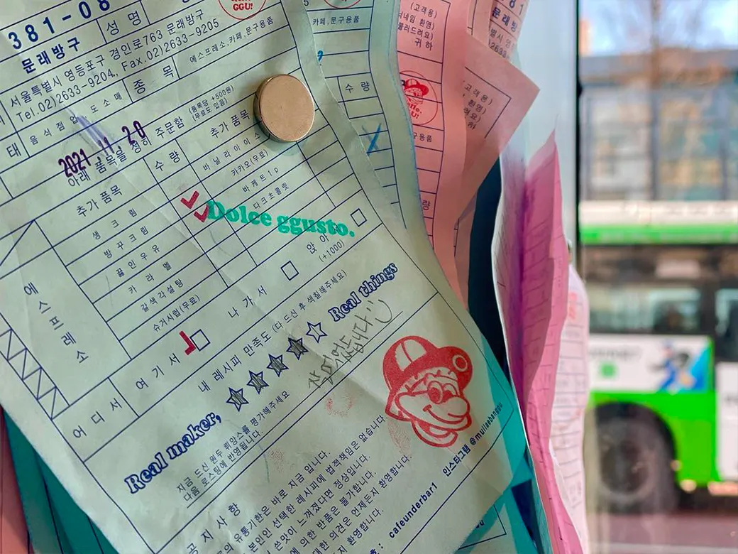 ‘문래방구’에서 가장 재밌는 점 중 하나는 바로 거래명세표에 작성하여 본인 취향의 에스프레소를 만든다는 점입니다.